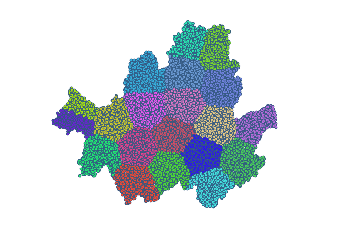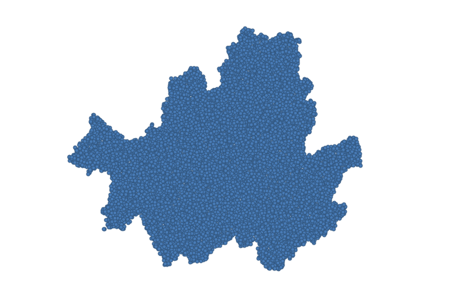 2. 먼저 서울시 경계 영역 내 무작위로 배치된 Point를 생성합니다. Point 개수가 많을수록 동일한 조각으로 분할될 수 있습니다. 여기서는 10,000개의 포인트를 생성하겠습니다.