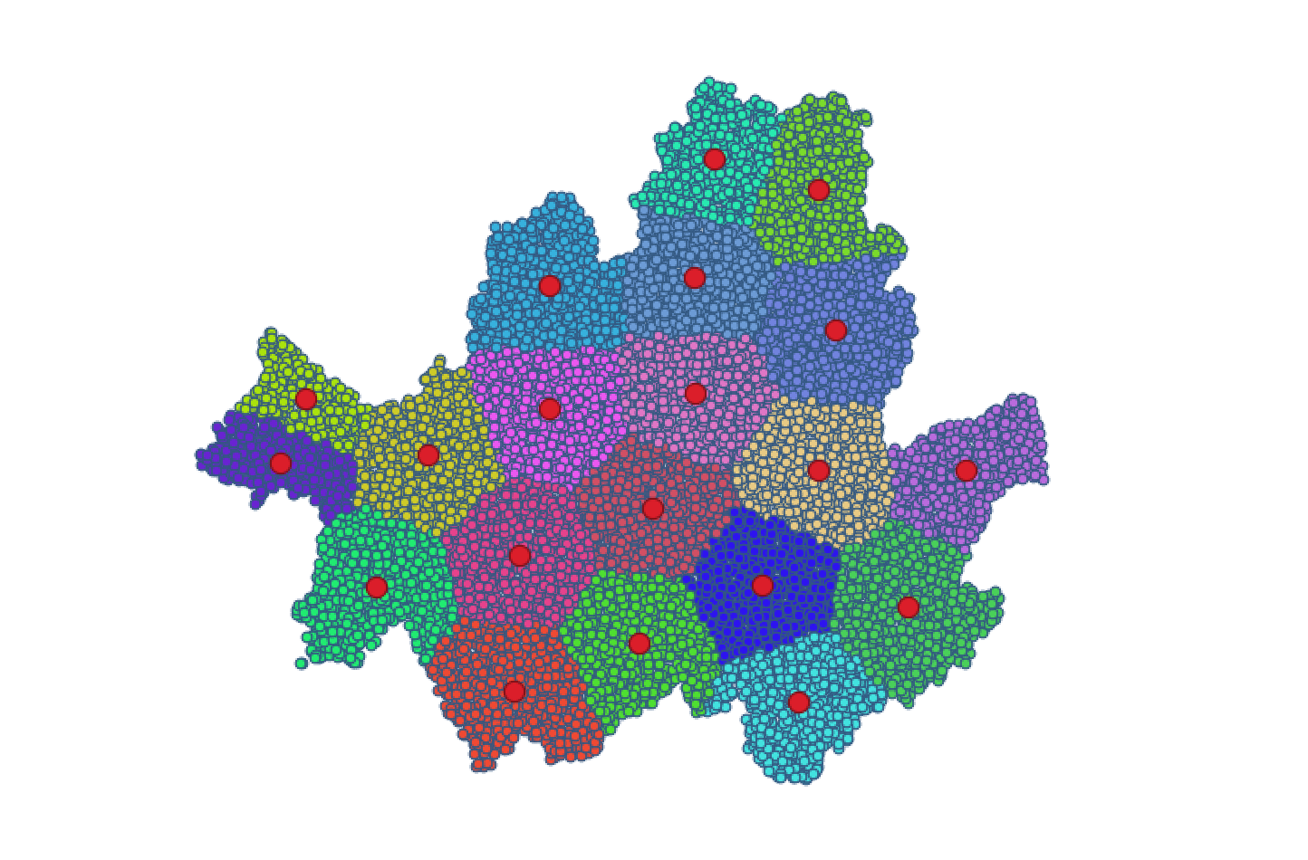 3. Point가 만들어졌으면 그 다음으로 20개의 조각 영역을 만들기 위한 Point Clustering 작업을 합니다. 그룹화 개수는 20으로 설정하였습니다. cluster 번호는 0부터 시작합니다.