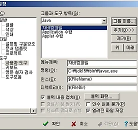 EditPlus 썸네일형 리스트형 EDIT Plus 자바 컴파일러, 어플리케이션, 애플릿 설정방법 1. 명령란에 javac.exe(자바 컴파일러)가 있는 경로를 지정한다. 2. Application을 수행하려면 java.exe를 실행시킨다. 3. Applet의 실행 파일은 appletviewer.exe 이다. 더보기 이전 1 다음